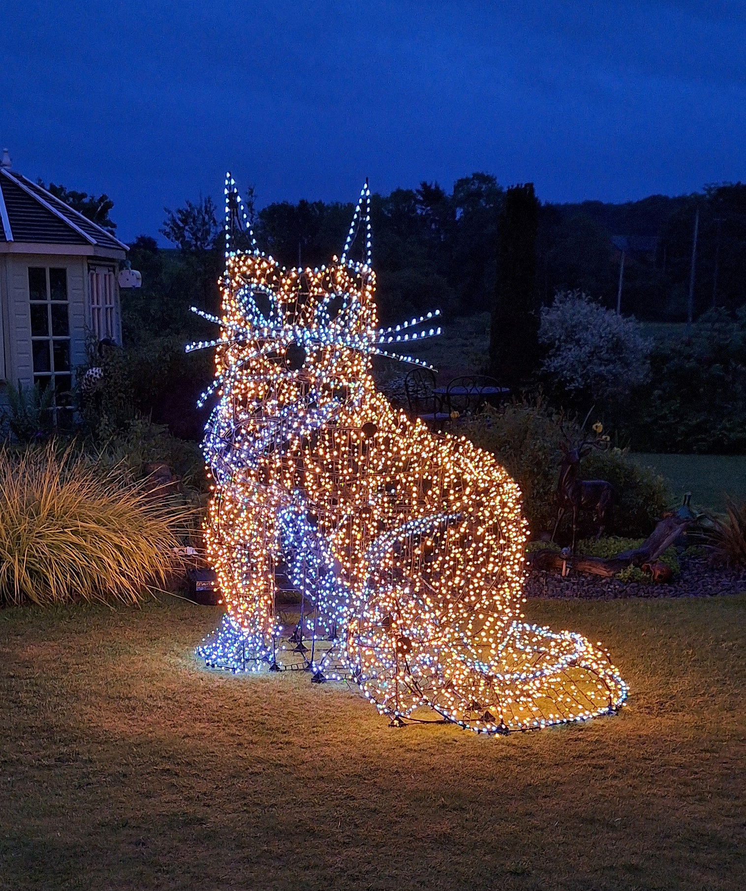 This stunning Cat sculpture is full 3D and stands 7ft high (2.1mtrs). This is a decoration that neither you nor your audience will have ever seen before. It is an advanced build due to the intricate instructions but the outcome is well worth the effort. Build time including lights is approximately 3 hours.