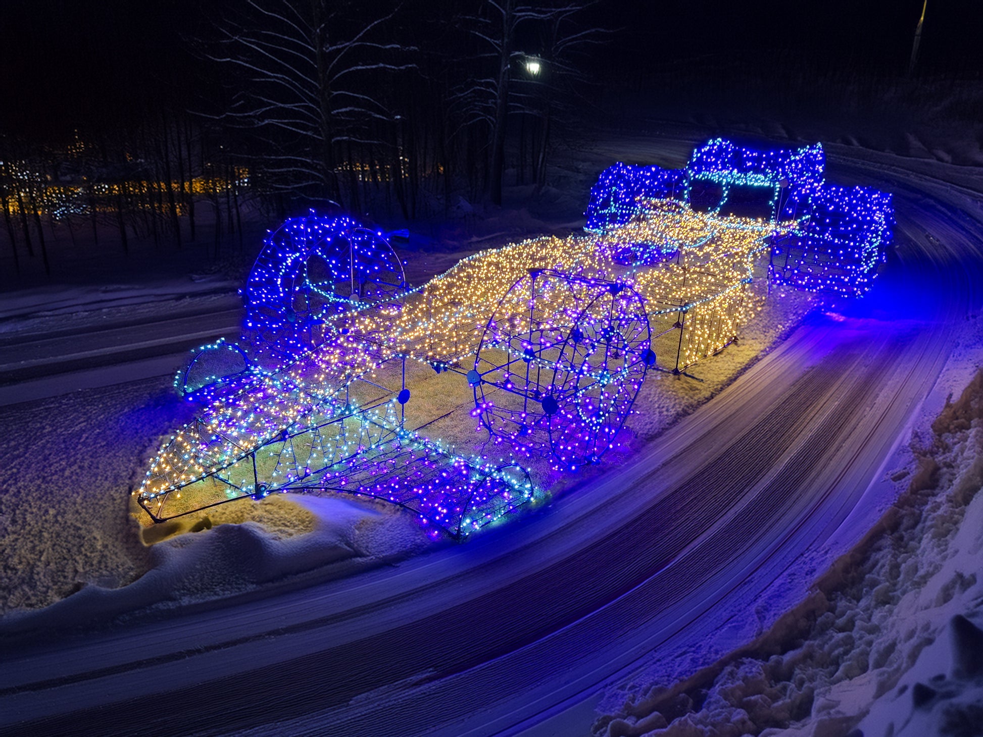 The racing car is a life size showstopper that will amaze your audience. A full size sculpture that takes over 8600 lights to show off