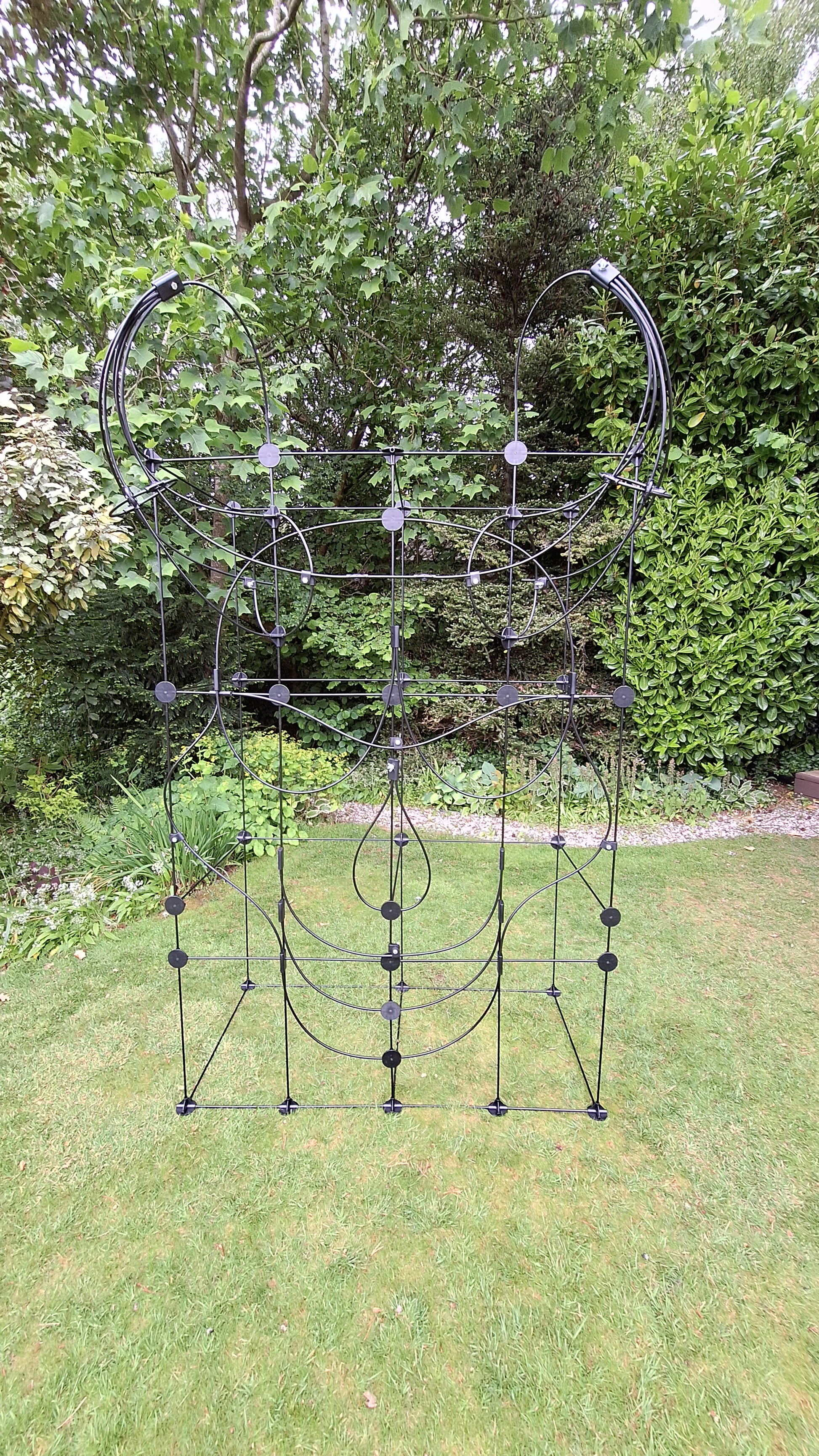 The Halloween Devil is a totally unique home Halloween display. It stands 2.4mtrs high and is 1.5mtrs wide. It is a medium difficulty design that requires the builder to be able to create the teeth detail with the line out lights rather than following the framework. Build time is approximately 2 ½ hours (with lights). The impact of this display is far scarier that the images show. Scare your audience this Halloween with the Devil.